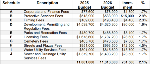 On October 6, Council gave three readings to the proposed inflationary adjustment to the Cityβs fees and charges. The anticipated date for the fees to take effect is January 7, 2026. Β Β