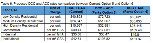 On March 31, Council carried forward draft Amenity Cost Charge (ACC) rates to stakeholder engagement but referred proposed Development Cost Charge (DCC) rates back to staff for further review – with likely adoption in 2027. The report presents two recommended options for DCC rate increases, representing either a 167% or 86% cost increase for high-density units.Â